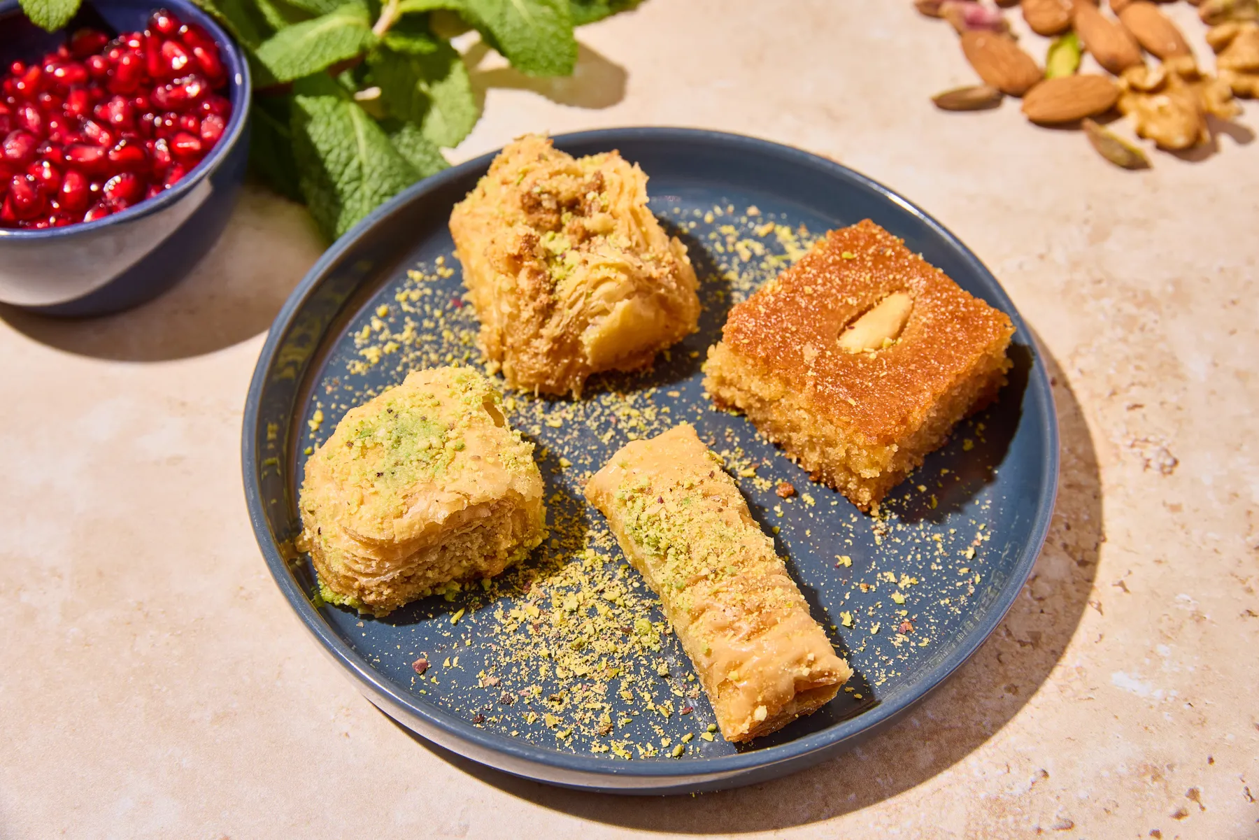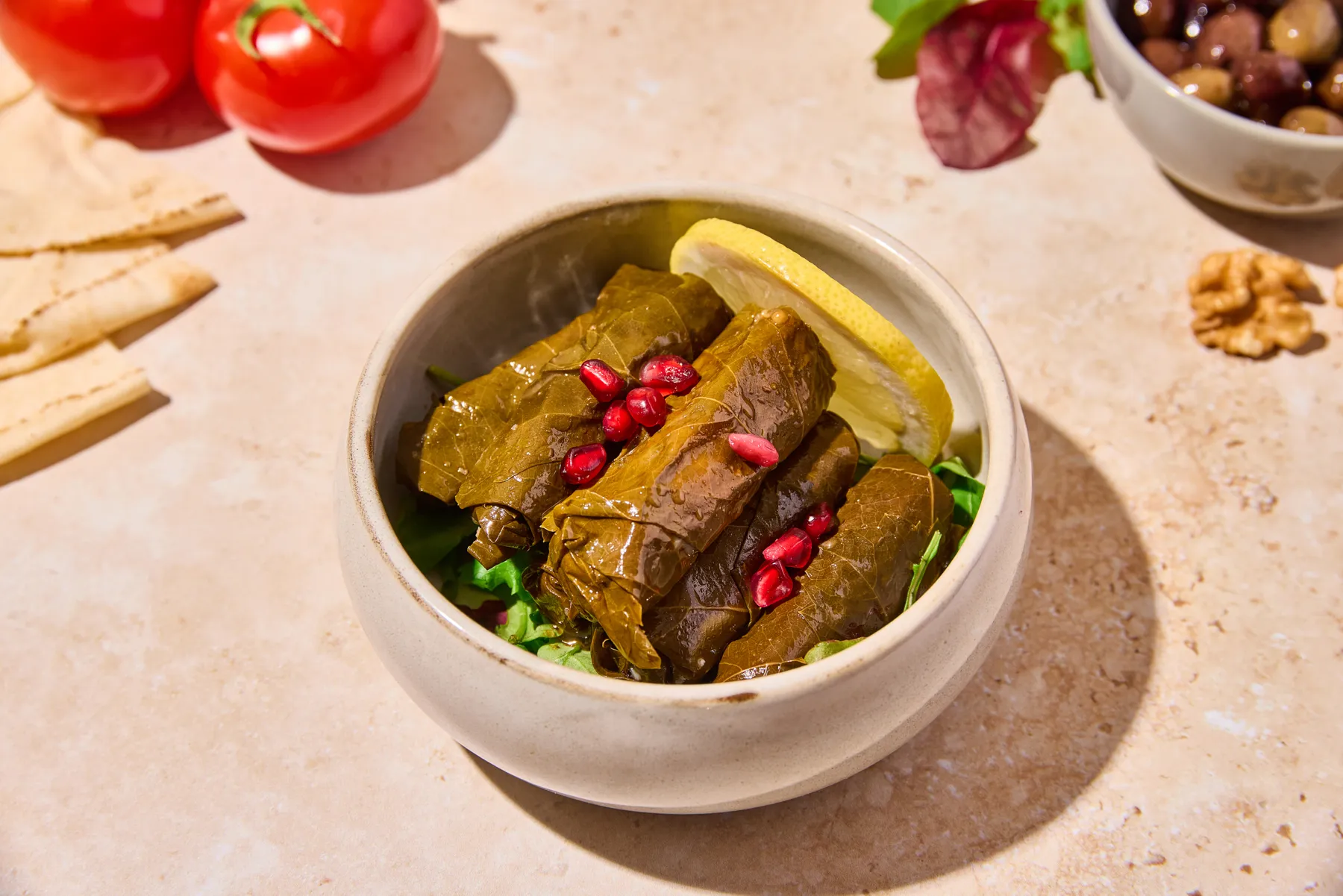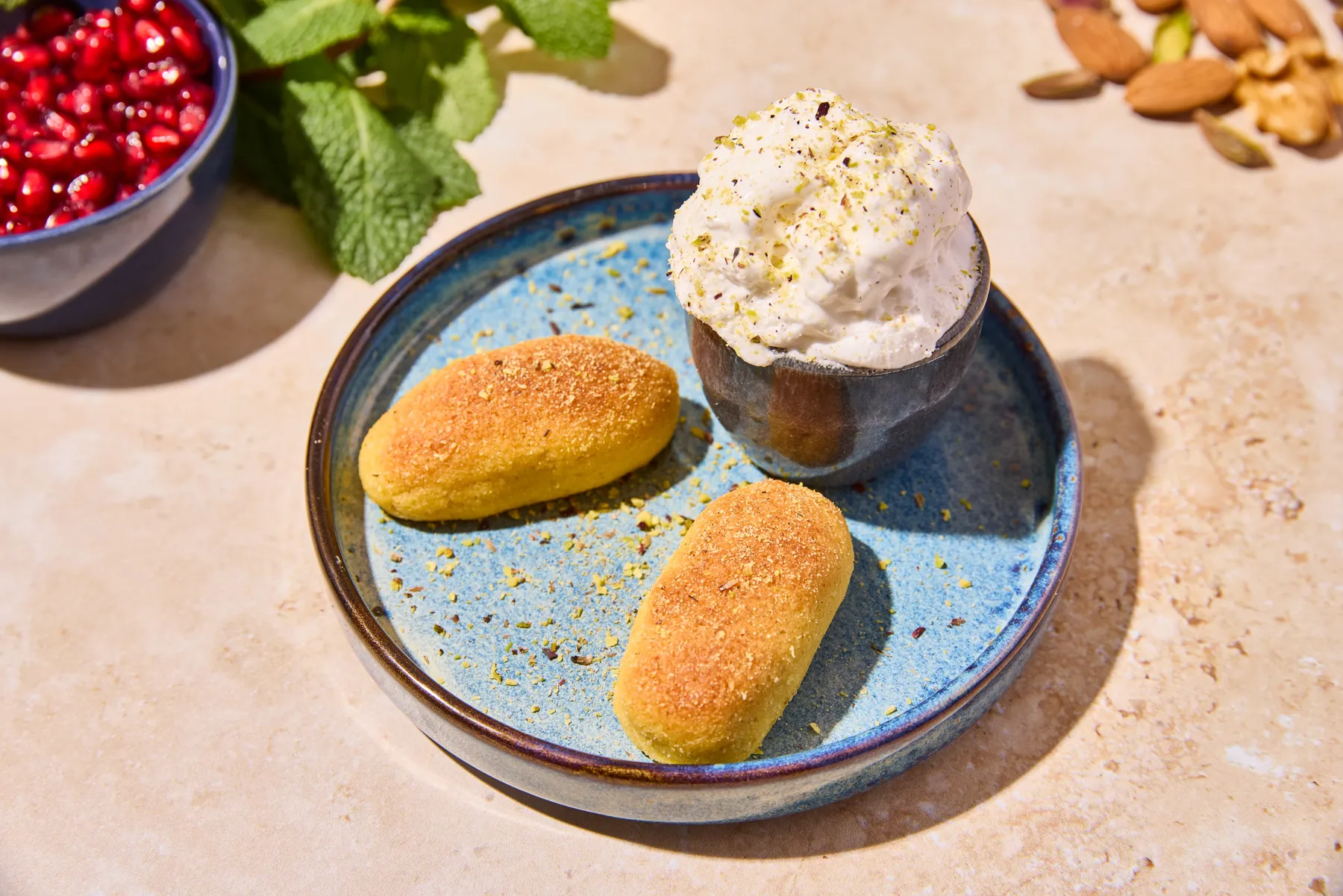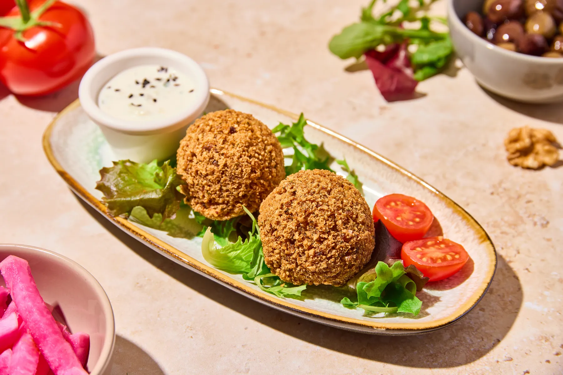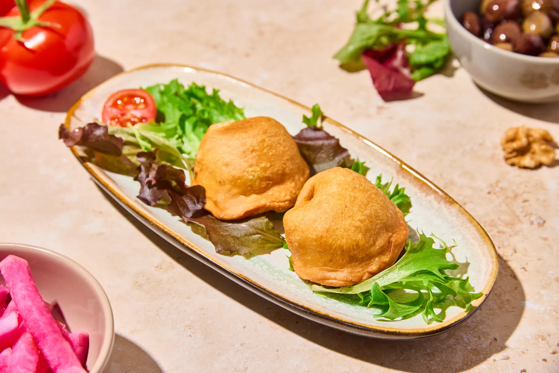 À partir de 2 personnes. Les incontournables de la cuisine libanaise. Que vous soyez végé ou amateur de viande, dégustez notre assortiment de variétés qui fera voyager vos papilles au pays du Cèdre ! (mezzés froids, beignets, viande, le tout accompagné de nos légendaires pommes de terre de riz ou de blé). AU CHOIX : 4 mezzés froids, 4 bouchées salées et 2 mezzés chauds