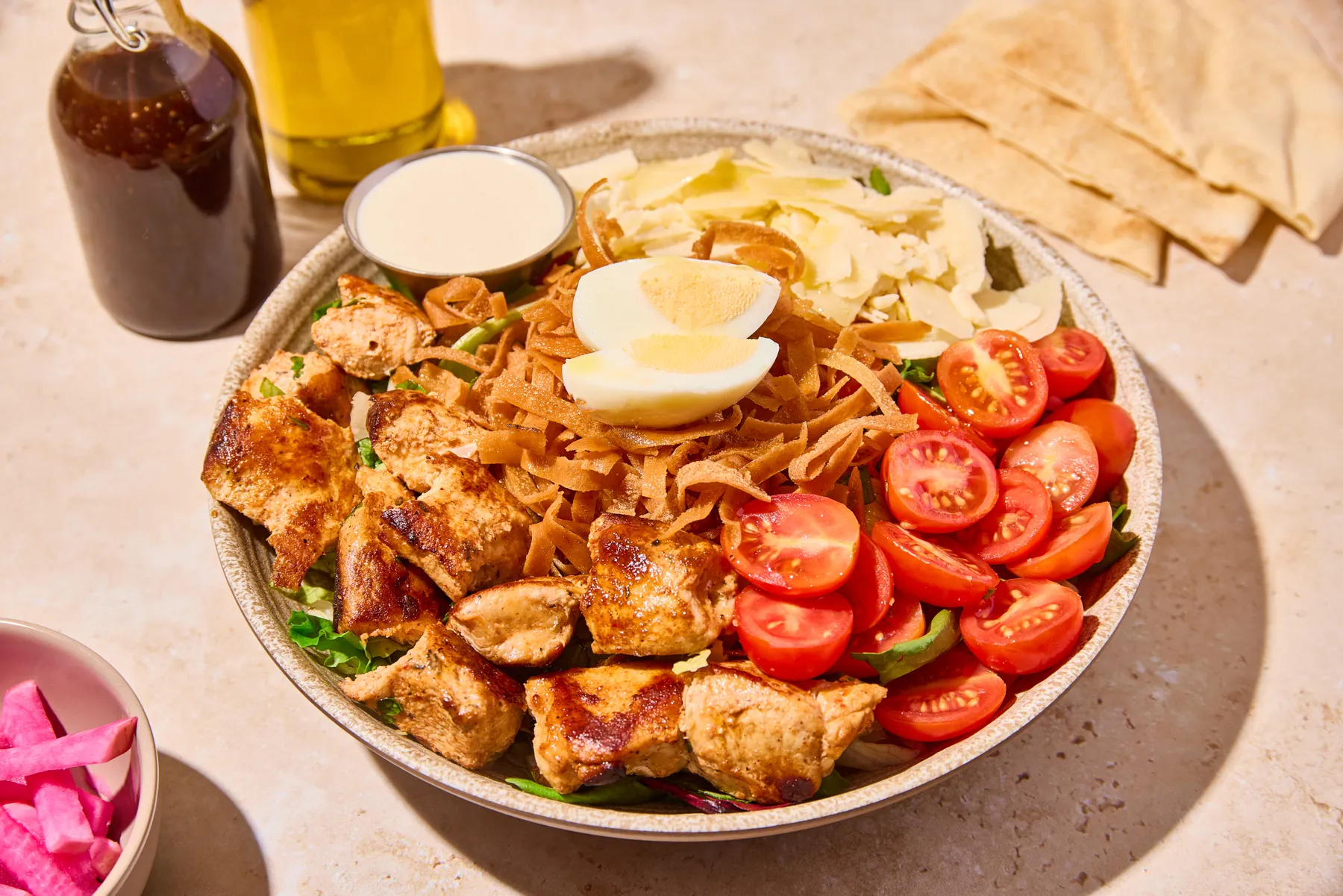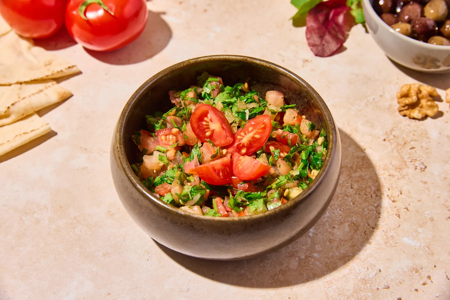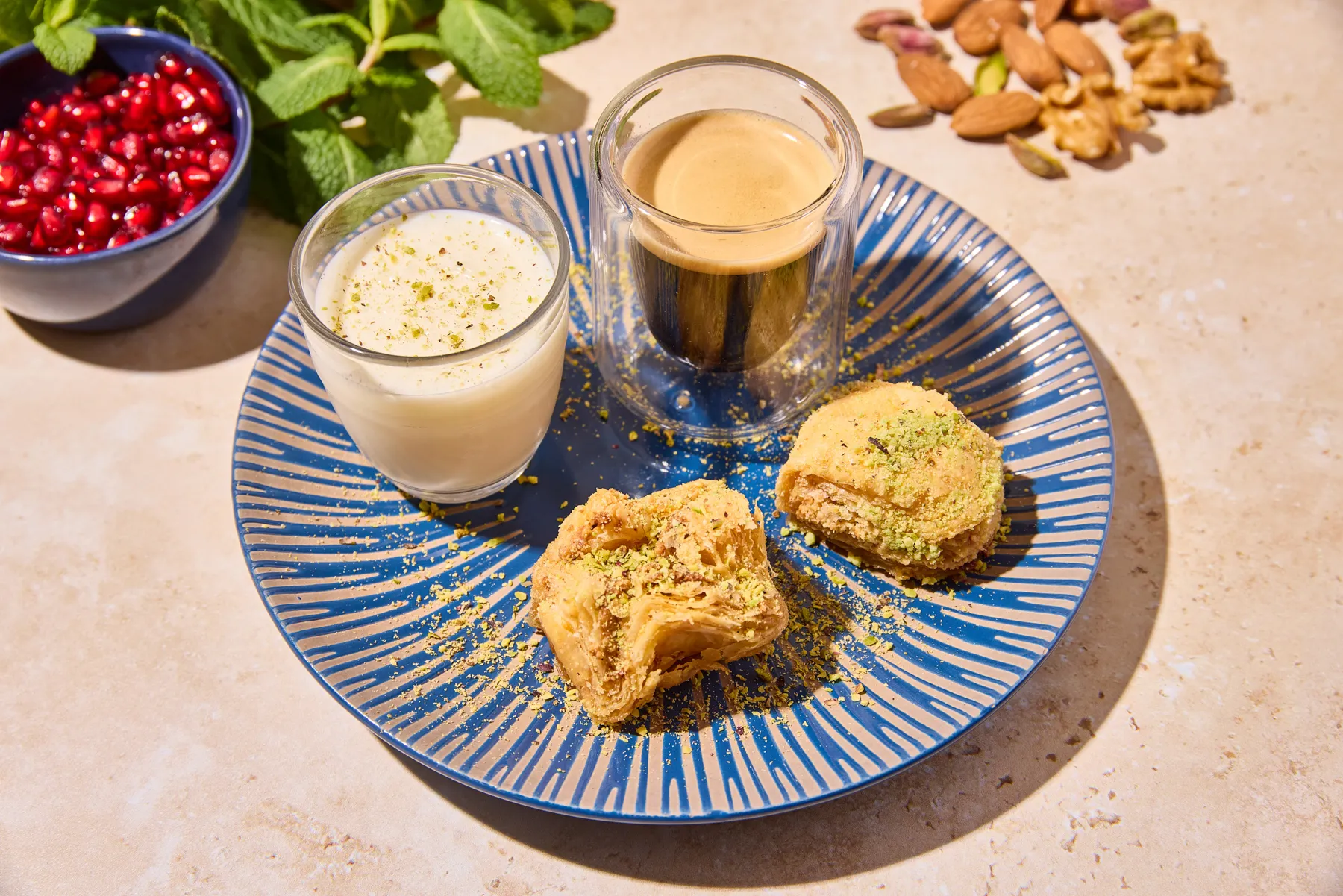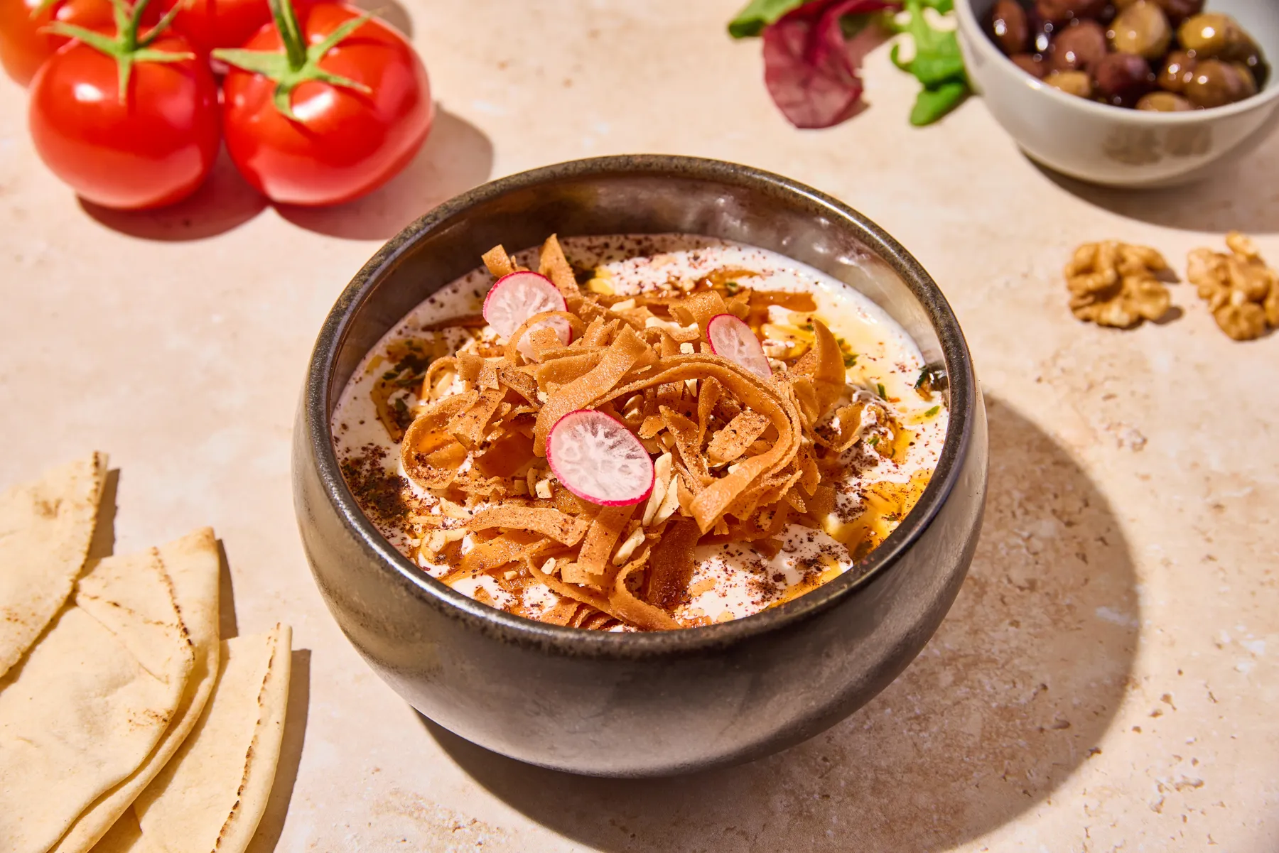 À partir de 2 personnes. Les incontournables de la cuisine libanaise. Que vous soyez végé ou amateur de viande, dégustez notre assortiment de variétés qui fera voyager vos papilles au pays du Cèdre ! (mezzés froids, beignets, viande, le tout accompagné de nos légendaires pommes de terre de riz ou de blé). AU CHOIX : 4 mezzés froids, 4 bouchées salées et 2 mezzés chauds